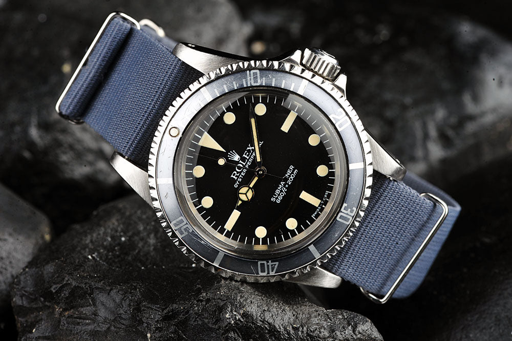 The 1970s marked a new era of underwater exploration as well as a need for dependable Nylon straps. To meet the rigorous demands of deep-sea diving, the Royal Navy partnered with Rolex to develop a robust timepiece. This collaboration birthed the iconic Rolex 5513 "MILSUB".